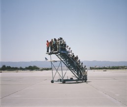 Quando nel 1997 in Albania viene dichiarato lo stato di emergenza, grazie a una borsa di studio, Adrian Paci si trasferisce a Milano, dove vive e lavora ancora oggi. Il viaggio, la migrazione, le radici culturali, lo spaesamento, la ricerca di linguaggi artistici adatti a comunicare e relazionarsi con il contesto non sono dunque per lui solo temi di ricerca fondamentali, ma nascono direttamente dalla sua esperienza personale. La fotografia in mostra fa parte di un progetto più ampio che comprende anche un video, in cui si intrecciano diversi livelli di riflessione: da una parte il desiderio universale dell’altrove, dall’altro il tema sempre attuale delle migrazioni. Attingendo all’immaginario del viaggio, l’artista sposta la nostra attenzione sulla diaspora forzata di tutti quelli alla ricerca di una vita migliore o, drammaticamente, della semplice sopravvivenza. Nel lavoro di Paci la dimensione personale, quella collettiva, quella sociale e quella soggettiva si fondono, e le esperienze quotidiane diventano universali.