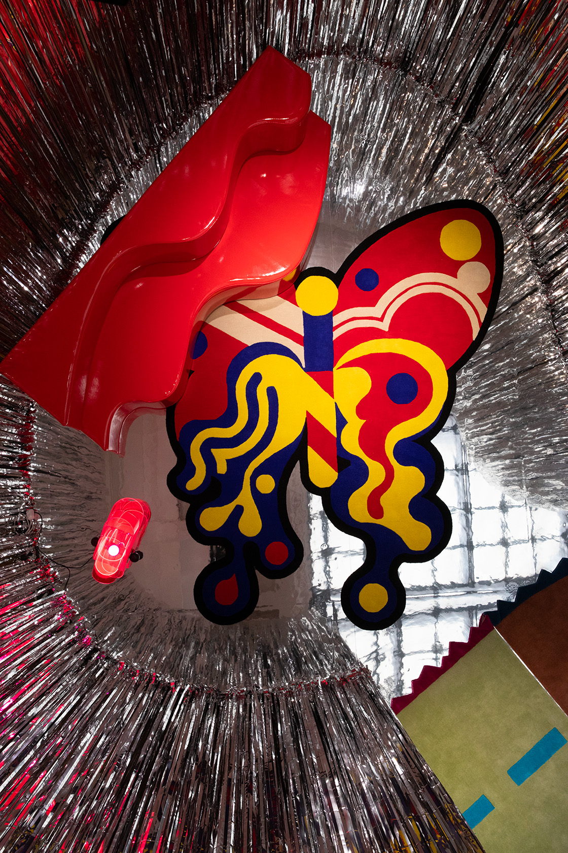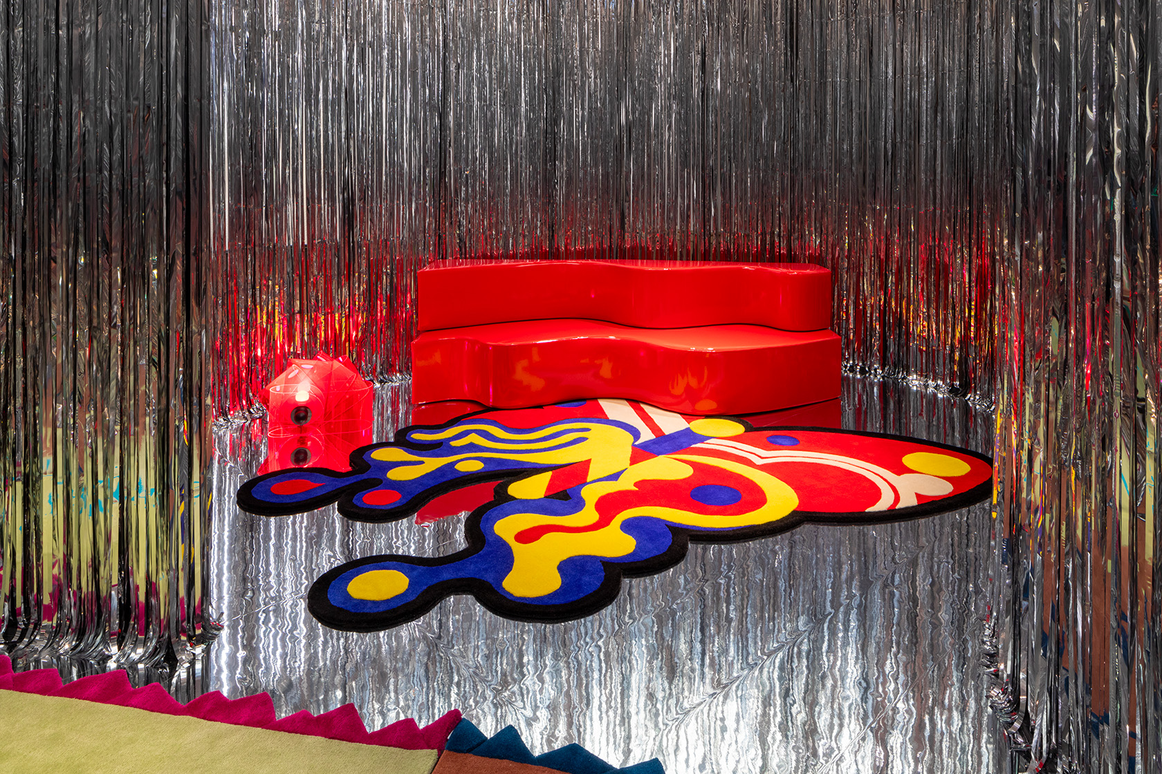 Leggerezza e componibilità consentono di variarne l’uso: Superonda può essere divano, letto e chaise longue. Come molti dei pezzi disegnati dal gruppo Archizoom, si rivela una sfida alle convenzioni borghesi, stimolando la creatività e la fantasia dell’utente. Il rivestimento in sky lucido, nei colori primari bianco, nero e rosso, accentua la sua immagine pop.
