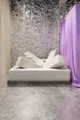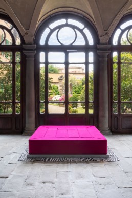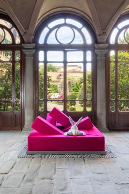 Il design di questo divano deriva dall’esperienza di vivere in un luogo ampio, originariamente un atelier ottocentesco per artisti, in cui i mobili dovevano essere pensati nella scala del luogo e non nella scala dell’uomo. È un oggetto che dialoga con il volume dello spazio complessivo e che tiene conto del fatto che è lì che viene usato.