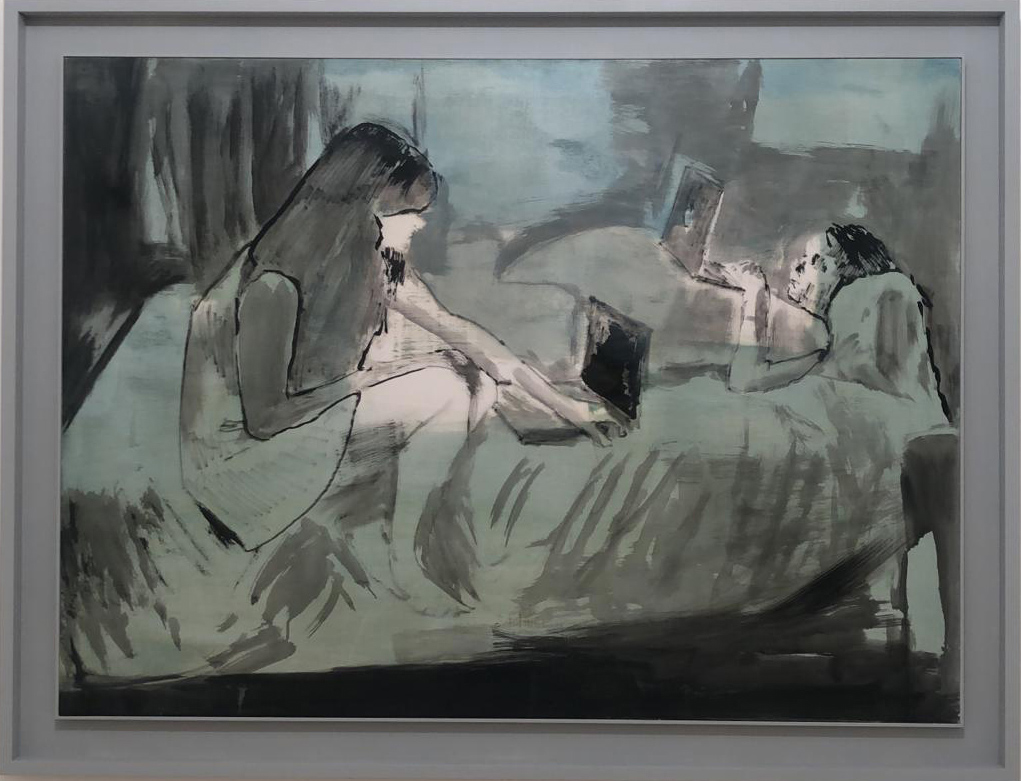Formatosi artisticamente a Milano, dove studia all’Accademia di Belle Arti di Brera, Miltos Manetas dedica da anni la sua ricerca artistica ai media e alle immagini della tecnologia. Computer, cavi, telefoni cellulari, mouse, volti illuminati da schermi di laptop sono i protagonisti dei suoi dipinti, in cui uno strumento tradizionale come la pittura viene rinnovato completamente. Pittore, ma anche teorico e promotore di quella che viene definita arte post-internet, fondatore del movimento artistico noto come Neen, ha saputo catturare lo spirito del tempo contemporaneo, di una generazione online e offline per la quale i confini tra mondo digitale e materiale sono sempre più sfumati. Per lui dipinti come la serie Cables (1997-in corso), di cui è in mostra un esempio, ritraggono “gruppi familiari in un interno”, sottolineando come nel mondo che abitiamo la tecnologia stessa sia diventata parte della famiglia.