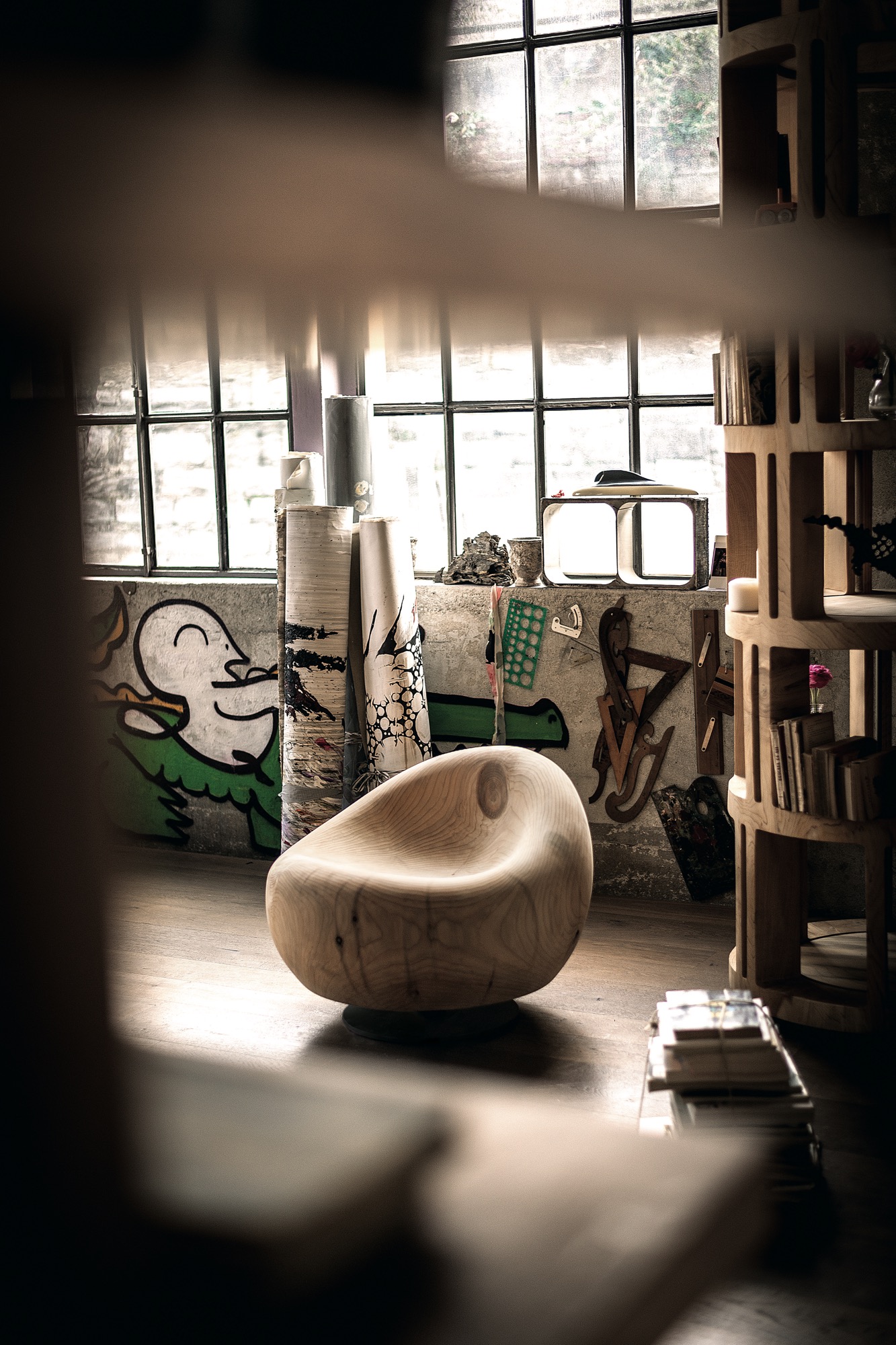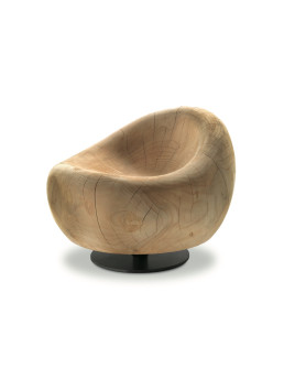 Poltrona in legno massello di cedro profumato lavorata da un blocco unico. Si tratta di un monolite scultoreo dal design curvilineo e sinuoso caratterizzato da una seduta ergonomica in linea di continuità con lo schienale. Disponibile nella versione con o senza basamento con gamba tubolare e piastra in ferro.